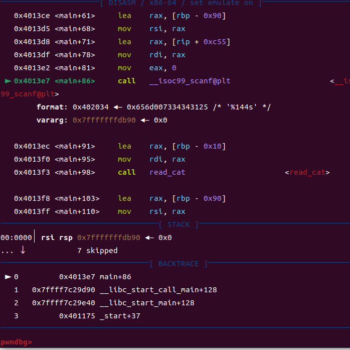 128๋ฐ์ดํธ ์ดํ ๋ฌธ์์ด๋ถํฐ๋ bof๋ก ์ธํด ./cat์ด๋ผ๋ ๋ฌธ์์ด์ด ์กด์ฌํ๋ ์์ญ์ ์นจ๋ฒํ ์ ์๊ณ