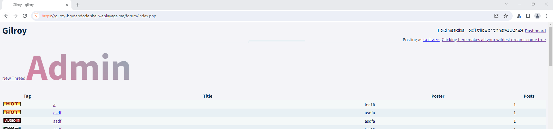 이와 동시에 index.php에서 글 목록에 poster 라는 열에 작성자 명을 띄워주는데 이를 잘 활용해서 normal group 계정으로 글을 작성하지만 admin group의 계정으로 적은 것처럼 시스템을 속일 수 있는 로직이 있었다.
