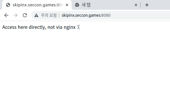 이는 nginx를 경유함을 의미하기 때문에, Access here directly, not via nginx :( 라는 문자열이 화면에 출력되는것이다.