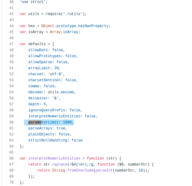 그리고 이 qs모듈의 소스를 확인해보면 (https://github.com/ljharb/qs/blob/main/dist/qs.js)