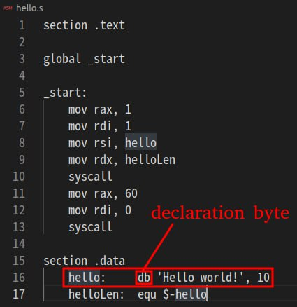hello: db 'Hello world!', 10