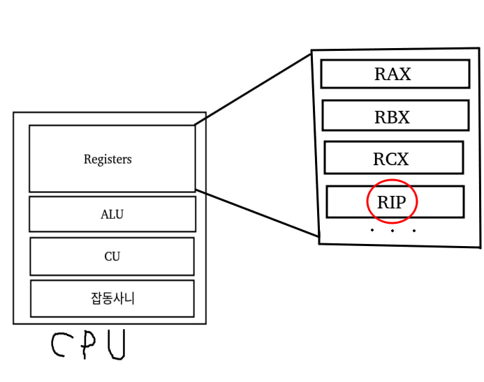 RIP레지스터는 다음에 실행할 명령어의 주소를 가지고 있는데,