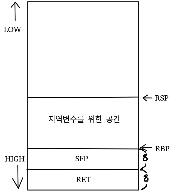 즉, RBP 레지스터는 지역변수에 접근하는 기준이 되는 것이다.
