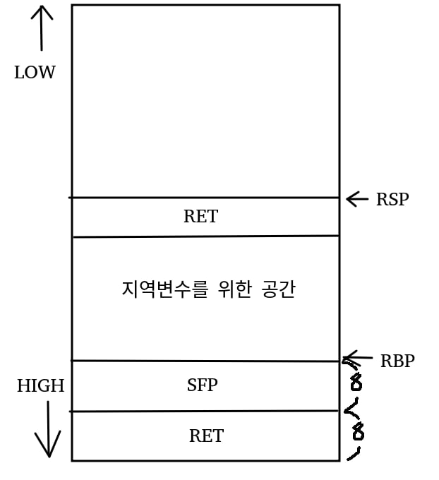 즉, RBP 레지스터는 저 부분을 가리키게 된다.