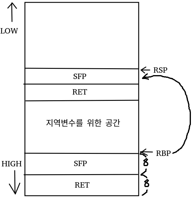 그리고 위의 PUSH RBP를 수행하면 RBP 레지스터가 스택에 푸시 되는데,
