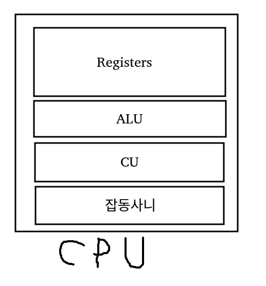 cpu의 모습을 간단하게 그림으로 그려보았다.