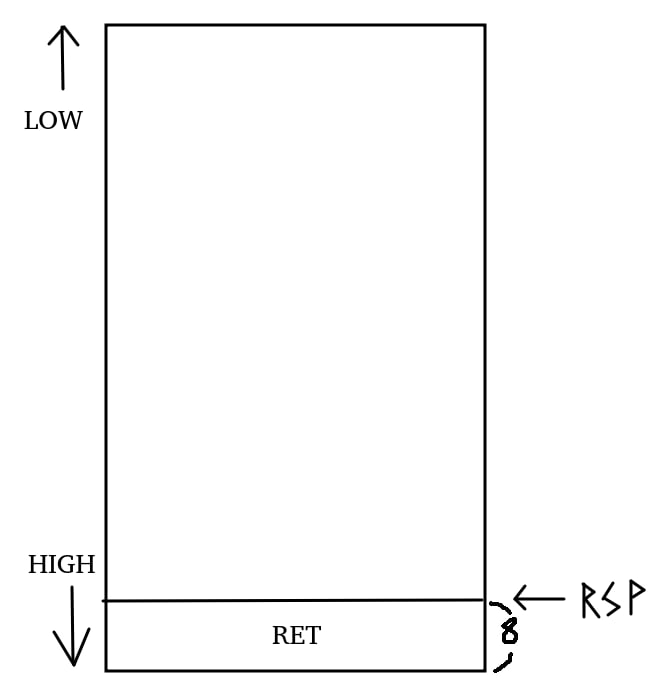 이때, 스택의 가장 끝 부분을 바로 RSP ( stack pointer ) 레지스터가 가지고 있다.
