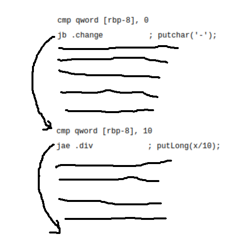 lea rsi, [rbp-8] ; rdx is remain %10 + '0' but, putchar('-');