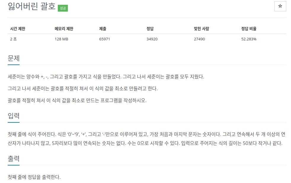 잃어버린 괄호라는 문제이다.