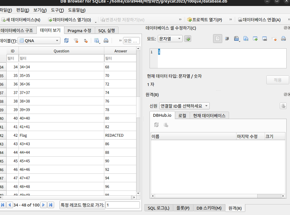 따라서 sql injection 문제라고 생각했고, ans에 1=1' or 1 # 를 넣어서 100번까지 풀어본 결과 문제 번호가 100이 초과되면